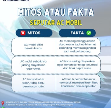 Service ac banjarnegara | Service AC Banjarnegara | 0877-2856-7222 | MITOS ATAU FAKTA SEPUTAR AC MOBIL |Masih banyak yang salah paham tentang penggunaan AC mobil. CV GLOBAL TEKNIK PURWOKERTO